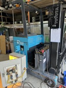 | リフトの調子が悪いとのご連絡いただき日程調整して訪問、初見でびっくり!ターミナルコードが腐食により切れてしまい自己流でボルトで留めている!! よくよくと担当の方からお話しをお伺いし測定、全体的に比重も電圧も低く状況を説明、コード交換と再生のご注文で発注いただきました。 トヨタ様の車体がすごいですね!機械的な破損がほとんど無く4FBでもまだまだ現役です。 |