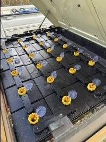 全セル交換終了! 700Ahから600Ahに変更したため接続バーがシングルになりました。 | ![]() |
